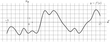 На рисунке изображен график производной функции f(x), определенной на интервале (−18; 6). Найдите количество точек минимума функции f(x) на отрезке [−13; 1].