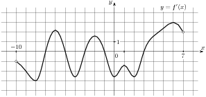 На рисунке изображен график производной функции f(x), определенной на интервале (−18; 6). Найдите количество точек минимума функции f(x) на отрезке [−13; 1].