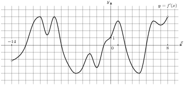 На рисунке изображен график производной функции f(x), определенной на интервале (−18; 6). Найдите количество точек минимума функции f(x) на отрезке [−13; 1].