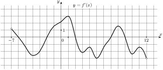 Точки экстремума соответствуют точкам смены знака производной. Производная меняет знак в точках −6, −2, 2, 6, 9. Таким образом, на отрезке [−10; 10] функция имеет