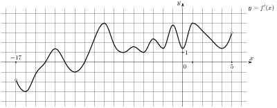 На рисунке изображен график производной функции f(x), определенной на интервале (−18; 6). Найдите количество точек минимума функции f(x) на отрезке [−13; 1].