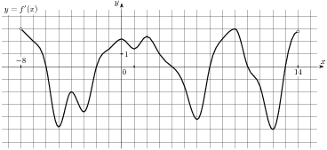 Точки экстремума соответствуют точкам смены знака производной. Производная меняет знак в точках −6, −2, 2, 6, 9. Таким образом, на отрезке [−10; 10] функция имеет