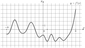 Точки минимума соответствуют точкам смены знака производной с минуса на плюс. На отрезке [−13; 1] функция имеет одну точку минимума x = −9.