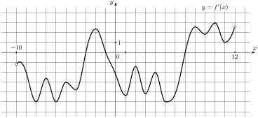 На рисунке изображен график производной функции f(x), определенной на интервале (−11; 11). Найдите количество точек экстремума функции f(x) на отрезке [−10; 10].