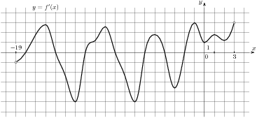Точки экстремума соответствуют точкам смены знака производной. Производная меняет знак в точках −6, −2, 2, 6, 9. Таким образом, на отрезке [−10; 10] функция имеет