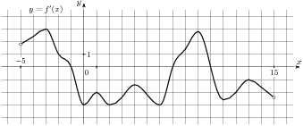 На рисунке изображен график производной функции f(x), определенной на интервале (−18; 6). Найдите количество точек минимума функции f(x) на отрезке [−13; 1].