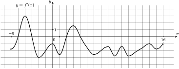 Точки экстремума соответствуют точкам смены знака производной. Производная меняет знак в точках −6, −2, 2, 6, 9. Таким образом, на отрезке [−10; 10] функция имеет