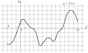 На ри­сун­ке изоб­ра­жен гра­фик про­из­вод­ной функ­ции f левая круг­лая скоб­ка x пра­вая круг­лая скоб­ка ,