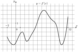 На ри­сун­ке изоб­ра­жен гра­фик про­из­вод­ной функ­ции f левая круг­лая скоб­ка x пра­вая круг­лая скоб­ка ,