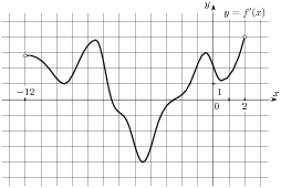 На ри­сун­ке изоб­ра­жен гра­фик про­из­вод­ной функ­ции f левая круг­лая скоб­ка x пра­вая круг­лая скоб­ка ,
