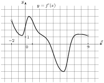 На ри­сун­ке изоб­ра­жен гра­фик про­из­вод­ной функ­ции f левая круг­лая скоб­ка x пра­вая круг­лая скоб­ка ,