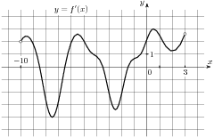Промежутки возрастания данной функции f(x) соответствуют промежуткам, на которых ее производная положительна, то есть интервалам (−7; −5,5), (−2,5; 4). Данные интервалы содержат целые точки −6, −2, −1, 0, 1, 2, 3. Их сумма равна −3.