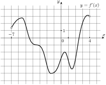 На ри­сун­ке изоб­ра­жен гра­фик про­из­вод­ной функ­ции f левая круг­лая скоб­ка x пра­вая круг­лая скоб­ка ,