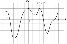 Промежутки возрастания функции f(x) соответствуют промежуткам, на которых производная функции положительна, то есть интервалам (−11; −10), (−7; −1), (2; 3). Наибольший из них — интервал (−7; −1), длина которого 6.