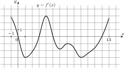 Промежутки возрастания функции f(x) соответствуют промежуткам, на которых производная функции положительна, то есть интервалам (−11; −10), (−7; −1), (2; 3). Наибольший из них — интервал (−7; −1), длина которого 6.