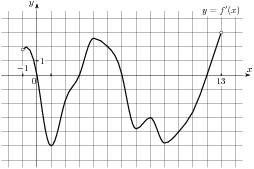 На рисунке изображен график производной функции f(x), определенной на интервале (−11; 3). Найдите промежутки возрастания функции f(x). В ответе укажите длину наибольшего из них.
