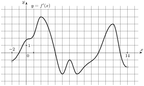 На рисунке изображен график производной функции f(x), определенной на интервале (−11; 3). Найдите промежутки возрастания функции f(x). В ответе укажите длину наибольшего из них.