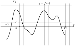 На рисунке изображен график производной функции f(x), определенной на интервале (−11; 3). Найдите промежутки возрастания функции f(x). В ответе укажите длину наибольшего из них.