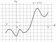 Если производная в некоторой точке равна нулю, а в ее окрестности меняет знак, то это точка экстремума. На отрезке [−2; 6] график производной пересекает ось абсцисс, производная меняет знак с плюса на минус. Следовательно, точка 4 является точкой экстремума.