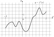 Если производная в некоторой точке равна нулю, а в ее окрестности меняет знак, то это точка экстремума. На отрезке [−2; 6] график производной пересекает ось абсцисс, производная меняет знак с плюса на минус. Следовательно, точка 4 является точкой экстремума.