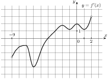 Если производная в некоторой точке равна нулю, а в ее окрестности меняет знак, то это точка экстремума. На отрезке [−2; 6] график производной пересекает ось абсцисс, производная меняет знак с плюса на минус. Следовательно, точка 4 является точкой экстремума.