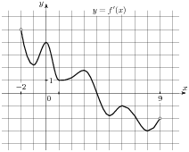 Если производная в некоторой точке равна нулю, а в ее окрестности меняет знак, то это точка экстремума. На отрезке [−2; 6] график производной пересекает ось абсцисс, производная меняет знак с плюса на минус. Следовательно, точка 4 является точкой экстремума.