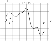Если производная в некоторой точке равна нулю, а в ее окрестности меняет знак, то это точка экстремума. На отрезке [−2; 6] график производной пересекает ось абсцисс, производная меняет знак с плюса на минус. Следовательно, точка 4 является точкой экстремума.