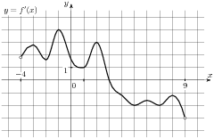 Если производная в некоторой точке равна нулю, а в ее окрестности меняет знак, то это точка экстремума. На отрезке [−2; 6] график производной пересекает ось абсцисс, производная меняет знак с плюса на минус. Следовательно, точка 4 является точкой экстремума.