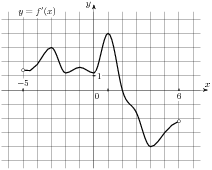 Если производная в некоторой точке равна нулю, а в ее окрестности меняет знак, то это точка экстремума. На отрезке [−2; 6] график производной пересекает ось абсцисс, производная меняет знак с плюса на минус. Следовательно, точка 4 является точкой экстремума.