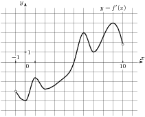 Если производная в некоторой точке равна нулю, а в ее окрестности меняет знак, то это точка экстремума. На отрезке [−2; 6] график производной пересекает ось абсцисс, производная меняет знак с плюса на минус. Следовательно, точка 4 является точкой экстремума.