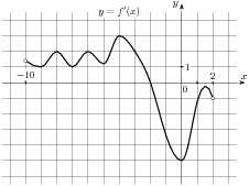 Если производная в некоторой точке равна нулю, а в ее окрестности меняет знак, то это точка экстремума. На отрезке [−2; 6] график производной пересекает ось абсцисс, производная меняет знак с плюса на минус. Следовательно, точка 4 является точкой экстремума.