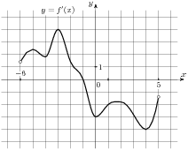 Если производная в некоторой точке равна нулю, а в ее окрестности меняет знак, то это точка экстремума. На отрезке [−2; 6] график производной пересекает ось абсцисс, производная меняет знак с плюса на минус. Следовательно, точка 4 является точкой экстремума.