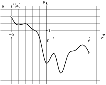 Если производная в некоторой точке равна нулю, а в ее окрестности меняет знак, то это точка экстремума. На отрезке [−2; 6] график производной пересекает ось абсцисс, производная меняет знак с плюса на минус. Следовательно, точка 4 является точкой экстремума.