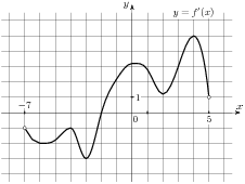 Если производная в некоторой точке равна нулю, а в ее окрестности меняет знак, то это точка экстремума. На отрезке [−2; 6] график производной пересекает ось абсцисс, производная меняет знак с плюса на минус. Следовательно, точка 4 является точкой экстремума.