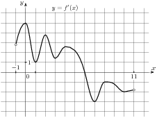 Если производная в некоторой точке равна нулю, а в ее окрестности меняет знак, то это точка экстремума. На отрезке [−2; 6] график производной пересекает ось абсцисс, производная меняет знак с плюса на минус. Следовательно, точка 4 является точкой экстремума.