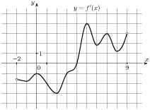 На рисунке изображен график производной функции f(x), определенной на интервале (−4; 8). Найдите точку экстремума функции f(x) на отрезке [−2; 6].