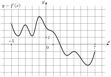 Если производная в некоторой точке равна нулю, а в ее окрестности меняет знак, то это точка экстремума. На отрезке [−2; 6] график производной пересекает ось абсцисс, производная меняет знак с плюса на минус. Следовательно, точка 4 является точкой экстремума.
