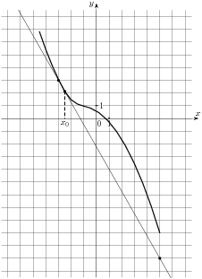 На ри­сун­ке изоб­ражён гра­фик функ­ции y  =  f(x) и ка­са­тель­ная к нему в точке с абс­цис­сой x0. Най­ди­те зна­че­ние про­из­вод­ной функ­ции f(x) в точке x0.