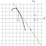 На ри­сун­ке изоб­ражён гра­фик функ­ции y  =  f(x) и ка­са­тель­ная к нему в точке с абс­цис­сой x0. Най­ди­те зна­че­ние про­из­вод­ной функ­ции f(x) в точке x0.