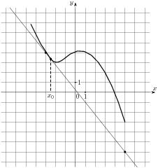 На ри­сун­ке изоб­ражён гра­фик функ­ции y  =  f(x) и ка­са­тель­ная к нему в точке с абс­цис­сой x0. Най­ди­те зна­че­ние про­из­вод­ной функ­ции f(x) в точке x0.