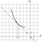 На ри­сун­ке изоб­ражён гра­фик функ­ции y  =  f(x) и ка­са­тель­ная к нему в точке с абс­цис­сой x0. Най­ди­те зна­че­ние про­из­вод­ной функ­ции f(x) в точке x0.