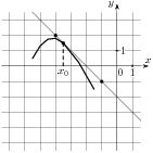 На ри­сун­ке изоб­ражён гра­фик функ­ции y  =  f(x) и ка­са­тель­ная к нему в точке с абс­цис­сой x0. Най­ди­те зна­че­ние про­из­вод­ной функ­ции f(x) в точке x0.