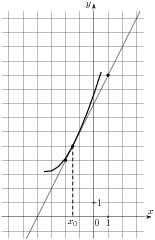 и касательная к нему в точке с абсциссой x0. Найдите значение производной функции f(x) в точке x0.