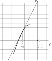 и касательная к нему в точке с абсциссой x0. Найдите значение производной функции f(x) в точке x0.