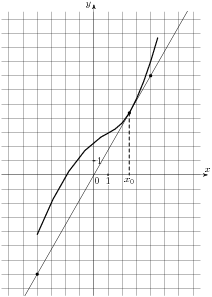 и касательная к нему в точке с абсциссой x0. Найдите значение производной функции f(x) в точке x0.