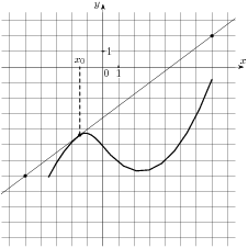 На ри­сун­ке изоб­ражён гра­фик функ­ции y  =  f(x) и ка­са­тель­ная к нему в точке с абс­цис­сой x0. Най­ди­те зна­че­ние про­из­вод­ной функ­ции f(x) в точке x0.