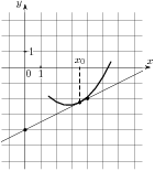 На ри­сун­ке изоб­ражён гра­фик функ­ции y  =  f(x) и ка­са­тель­ная к нему в точке с абс­цис­сой x0. Най­ди­те зна­че­ние про­из­вод­ной функ­ции f(x) в точке x0.