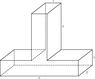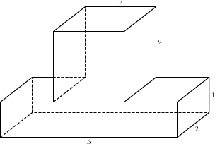 Найдите площадь поверхности многогранника, изображенного на рисунке (все двугранные углы прямые).
