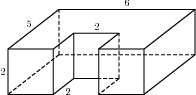 Найдите объем многогранника, изображенного на рисунке (все двугранные углы прямые).