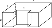 Найдите объем многогранника, изображенного на рисунке (все двугранные углы прямые).Объем данного многогранника равен разности объемов параллелепипедов со сторонами 5, 2, 4 и 1, 2, 2: